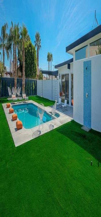 This outdoor setting provides opportunities for a variety of activities and experiences. Walking barefoot on the artificial grass surrounding the pool is possible, eliminating the need for the homeowners and their guests to step on the hot concrete. Following a relaxing swim, the artificial grass protects wet feet by providing traction. There is no need to be concerned about surfaces prone to slipping, and if someone falls, the artificial turf serves as a supportive cushion.