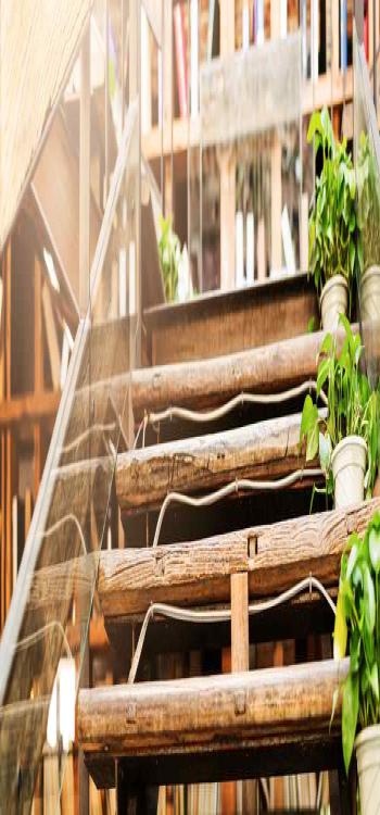 - Books can be stored at each stair level or along the railing wall.