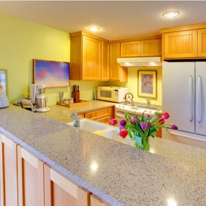 | Materials & Furniture | Quartz, granite, marble, or sintered stone countertop; plywood or engineered wood base; optional bar stools |