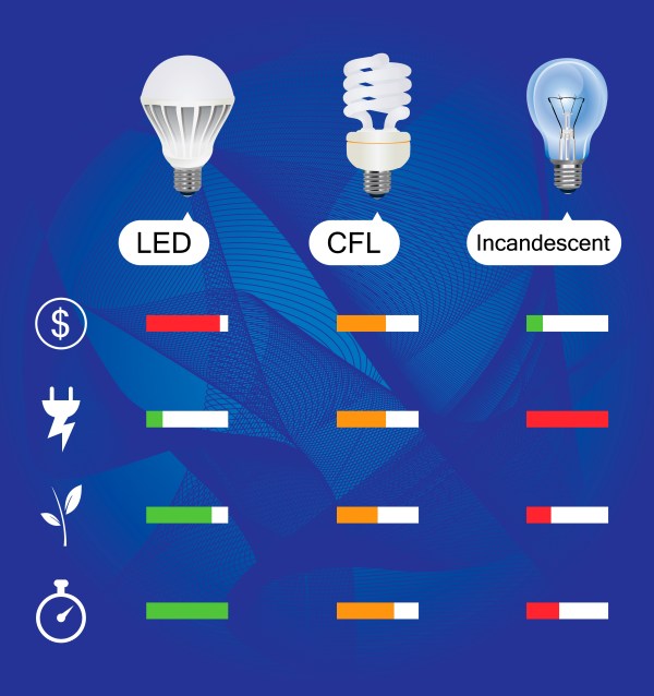 - चमकने वाले बल्बों की जगह पर CFL(कॉम्पैक्ट फ्लोरोसेंट लाइट) या LED रोशनी का इस्तेमाल करें| ऐसा करके आप चमकने वाले बल्बों में लगने वाली ऊर्जा/एनर्जी का 75% तक बचा सकते हैं।
