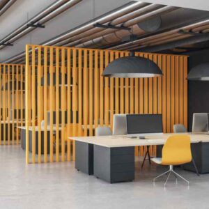 Adding tiny details seen in a design studio can go a long way toward creating a nice working space. Wooden planks could be added to separate desks, creating a visual appeal that is gaining popularity in the office interior design environment.