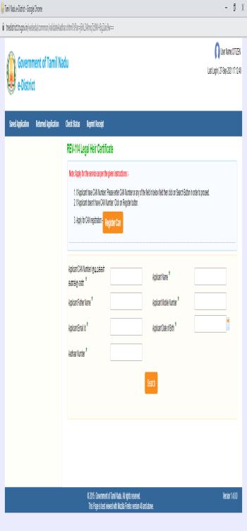 - Log in to the registered e-service portal of the Tamil Nadu Government.