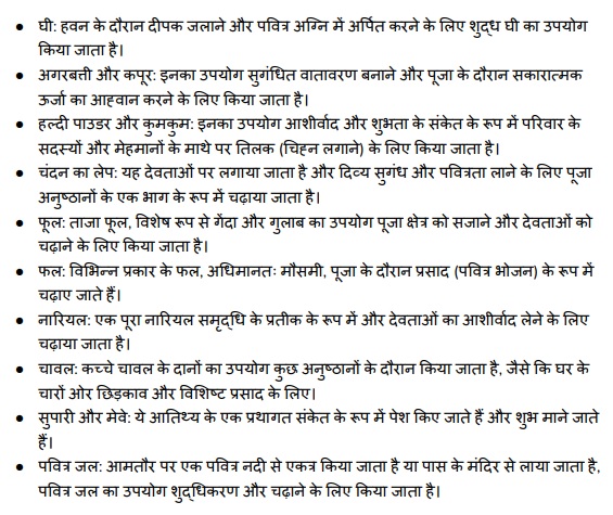 यहाँ मैंने कुछ सामान्य रूप से इस्तेमाल की जाने वाली griha pravesh samagri दी है: