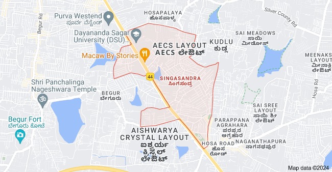 Singasandra is in Bangalore South near Electronic City. The Singasandra pin code is 560068. The primary factors driving its growth are its excellent connectivity and close proximity to Electronic City. The areas around Singasandra are HSR Layout, Parappana Agrahara, Hosapalya, Harlur, Basapura, and Begur.